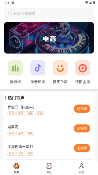 首页设有排行榜、抖音热歌、搞笑铃声、怀旧金曲等版块,同时也收录了各类热门铃声。