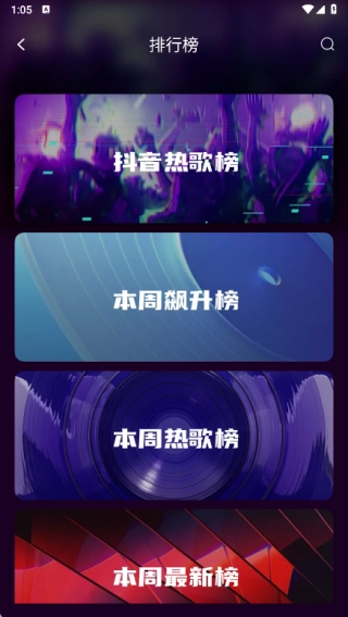 在排行榜页面,你能看到抖音热歌榜、本周飙升榜、本周热歌榜和本周最新榜的相关信息。