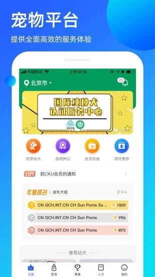 这是一个为会员打造的移动业务办理平台,在这里,用户可以便捷地处理核心业务、快速完成赛事报名、办理犬只过户更名手续,还能享受会员费用的代收代缴服务。目前,更多专属的尊享服务也正在陆续上线中。