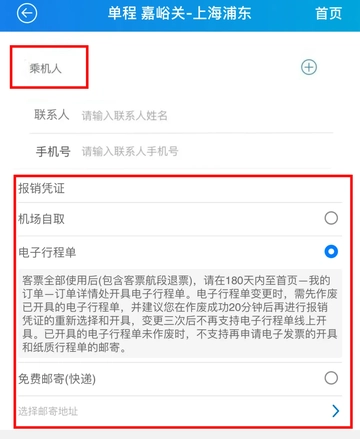 4.添加“乘机人”,并选择报销凭证领取方式。