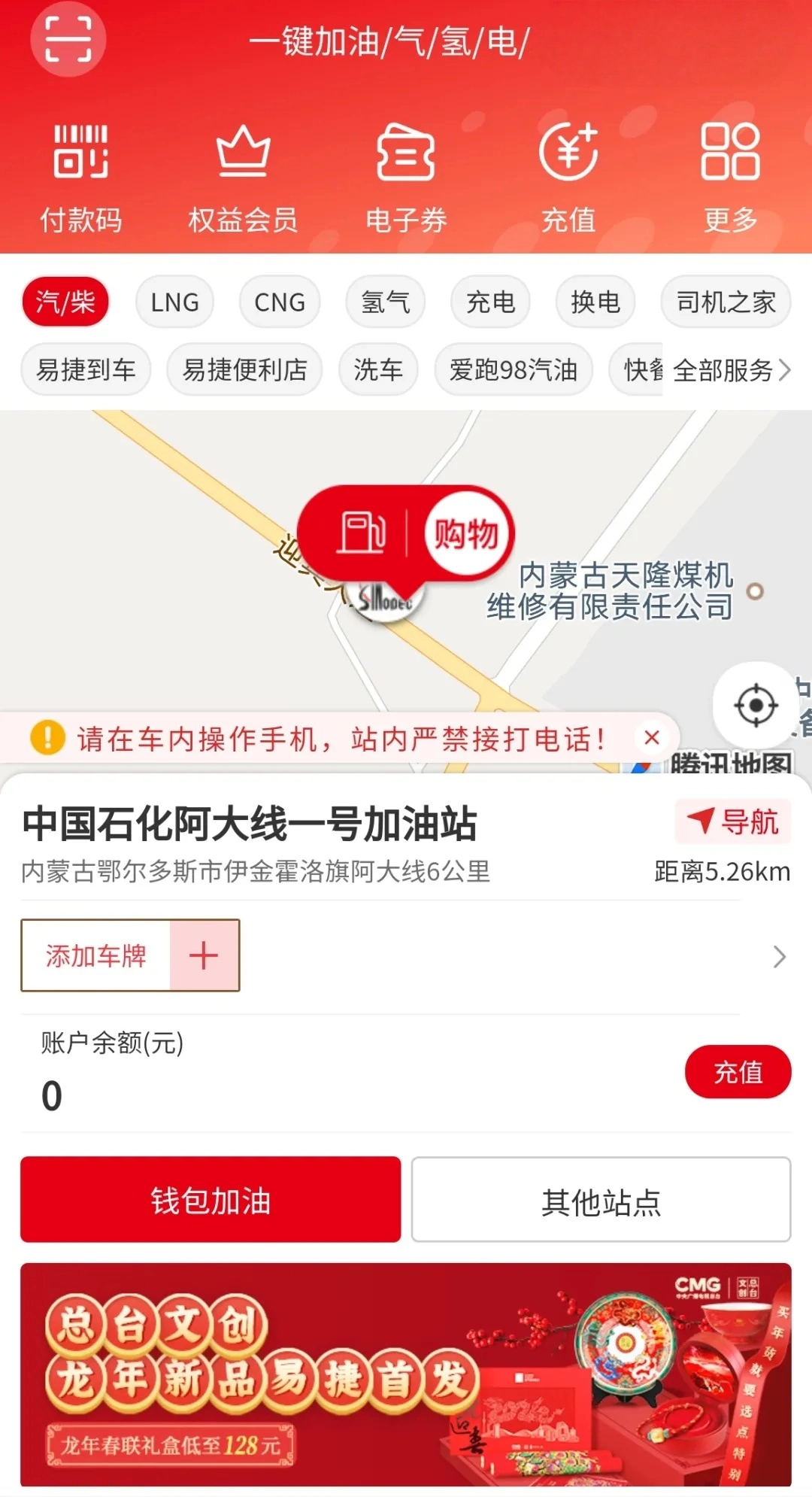 步骤三:完成充值后,系统会依据您的手机定位信息,自动为您推荐距离最近的加油站。