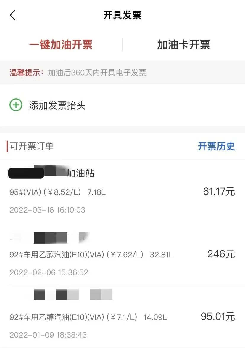 步骤五:加油结束后,您可以在“更多”选项中找到对应的订单,自行开具电子发票。