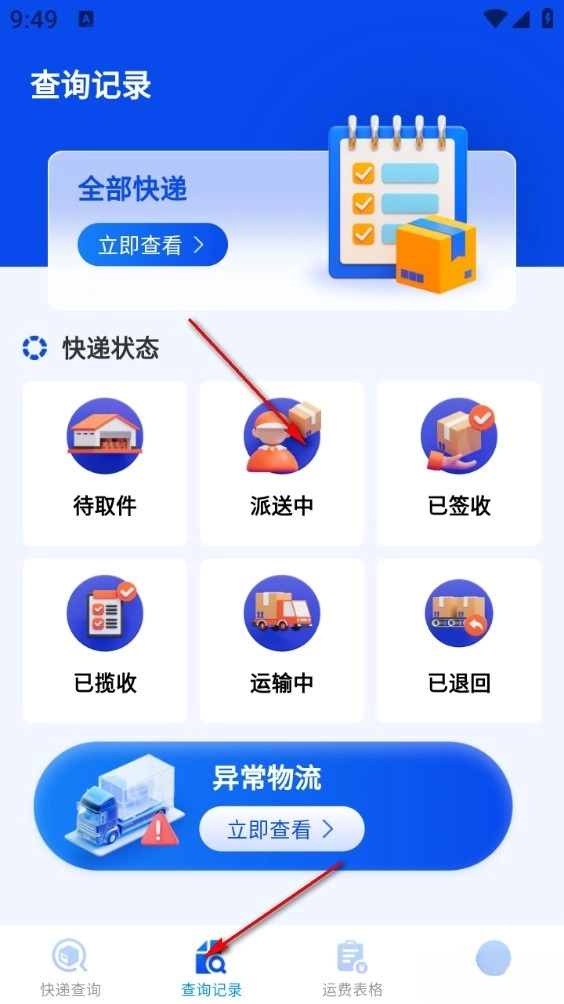 4、点开主页查询记录可以看到之前查询过的快递信息