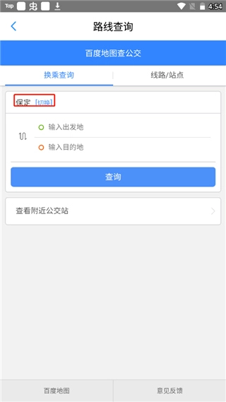 点击“切换”按钮就能更改你的定位,之后再输入起点和终点。
