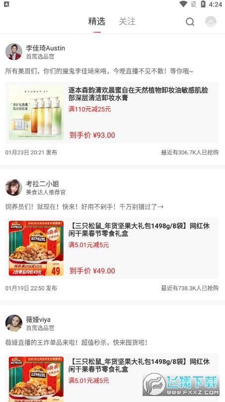 明星直播达人李佳琦、薇娅、烈儿宝贝、雪梨的直播间好物可一键直达加购,无需花费时间观看直播,也不用熬夜盯着直播抢购、守着手机秒杀,不必再担心错过优惠活动。这样一来,购物体验会更简单轻松,让大家重新找回购物原本的愉悦感。
