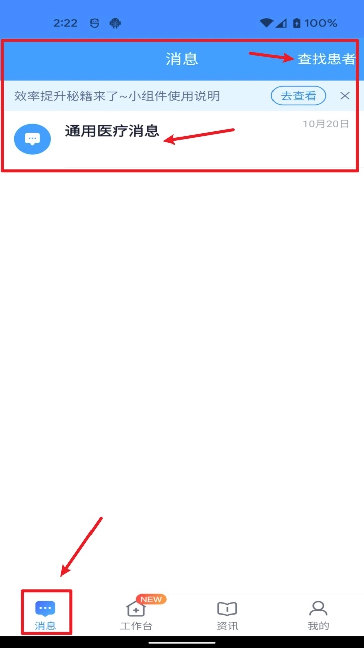 切换至“消息”页面,就能查看系统通知和“通用医疗消息”公告了。