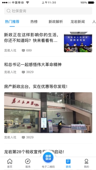 2、进入软件后,点击资讯,这里可以看到市内的就业资讯;