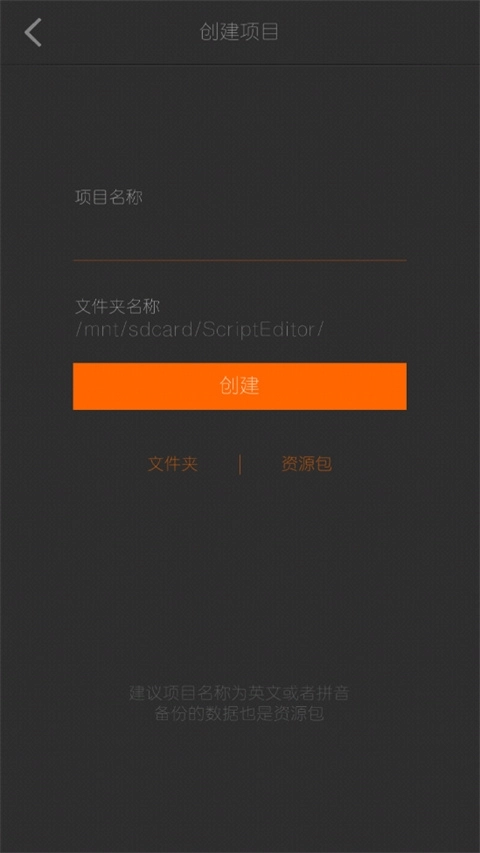 2、填写项目名称和文件夹名称;