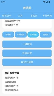 画质阁助手是一款游戏画质提升工具,可以支持多样化的设备调节,不管是低端机还是高端机等都能选择选择,还可以自定义调整。针对修复闪退等功能都是一键完成的,提供丰富的画质参数选项,根据自己的偏好和手机适配性选择,带来的游戏体验也会更加刺激的。