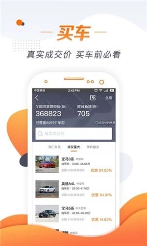 1、平台汇聚了海量汽车信息,能为您的选购提供全方位支持,助您轻松挑选心仪座驾,随时畅享有车生活的乐趣。 2、在线即可查询各类车辆的真实成交价格,数据精准可靠,帮您有效规避购车陷阱,避免不必要的损失。