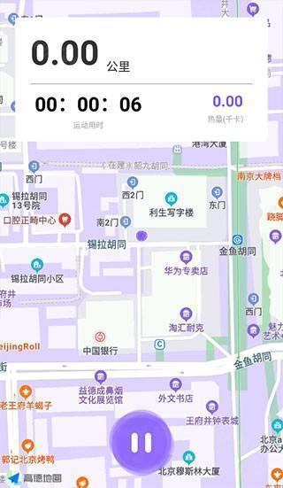 然后就可以开始运动啦,跑上一会儿,就能在地图上看到自己的运动轨迹图了,下方还能随时暂停呢!