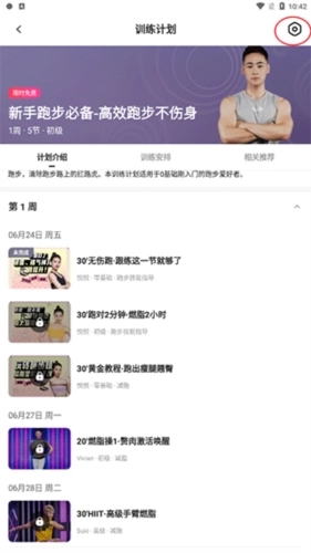 2、选择你需要退出的计划,点击右上角的“训练计划设置”。