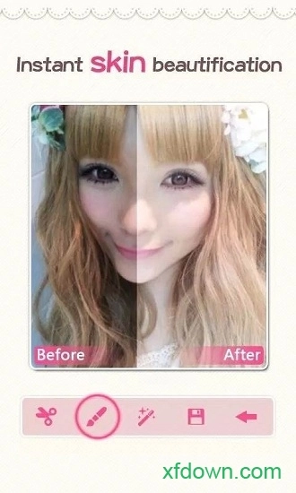 “美白大师” 这款修图工具能让您的照片呈现出年轻十岁的效果!心动了吗?快来体验一下吧!当您翻阅明星杂志时,是否好奇为何杂志上的明星照片都格外精致漂亮,可见到本人却感觉差距很大?其实不少明星也会有痤疮、皱纹,或是原本皮肤状态并不理想,这都是后期修图“包装”的功劳——通过修图,您的照片同样能达到这种惊艳效果! 不妨试试用它去除面部的粉刺、暗疮和皱纹,给眼部与嘴角的肌肤做个磨皮处理;对了,还能一键美白,把照片里的黄牙也悄悄“藏”起来。操作简单又有趣,希望您的照片从此告别平淡,变得更精致出彩!