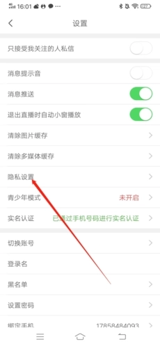 在设置页面,找到下方的“隐私设置”,点击进入;