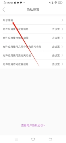 在页面最顶部,就能找到“账号注销”这个选项,接下来我们点击它。