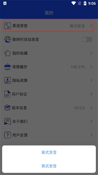 另外,点击“我的”后,用户还能依据自身需求在中式发音和美式发音之间进行切换。