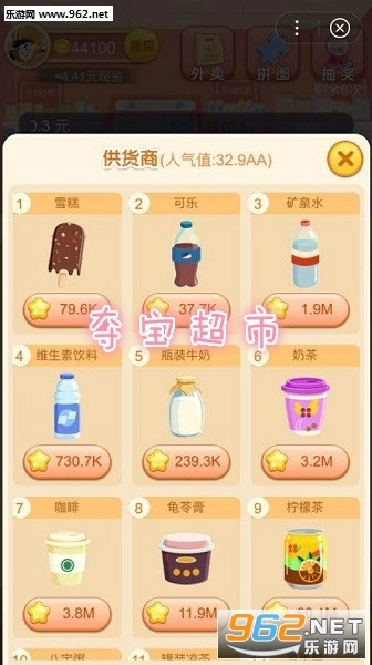 《夺宝超市红包版》是一款十分有趣的休闲游戏,核心玩法围绕模拟经营展开。在游戏里,玩家需要用心打理自己的超市,推动它持续发展壮大,丰富商品的种类。通过经营赚取的金币,还能兑换成现金红包奖励。感兴趣的话,就赶紧来体验吧!