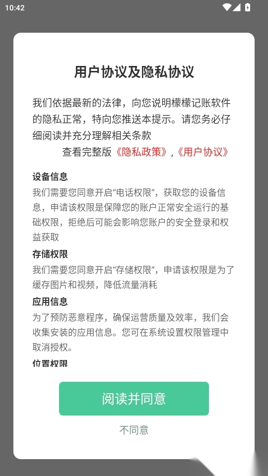 1.打开软件阅读“用户协议及隐私协议”点击“阅读并同意”进入