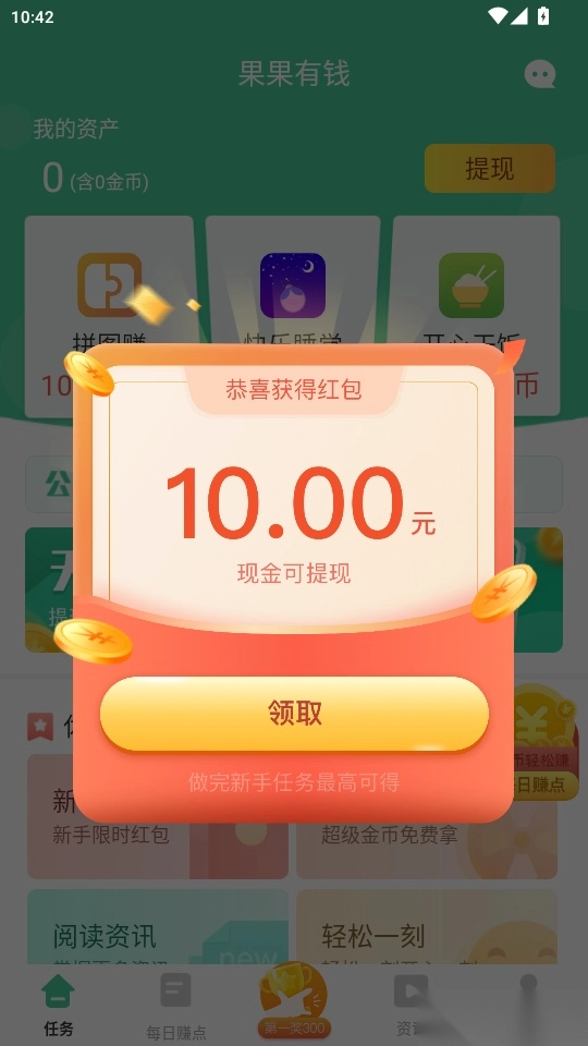 3.之后会自动弹出新人红包奖励,点击“领取”即可一键领取红包使用