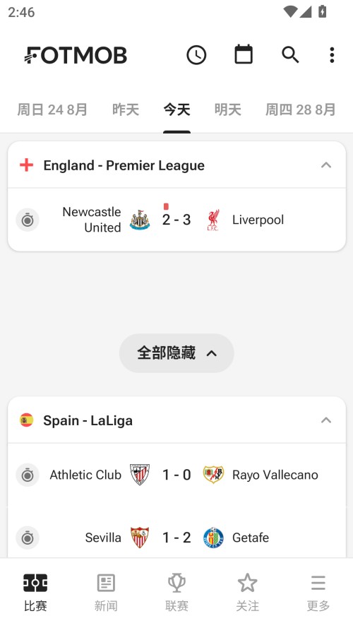 1、在本站FotMob,软件里展示了每天实时的足球赛事比分和各种实时体育新闻,喜爱足球的小伙伴很多人都在用这款软件。