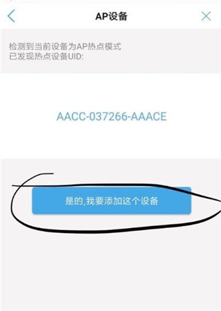 1、先打开摄像头热点,将手机连上摄像头热点,再打开,点击添加设备