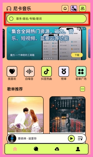 尼卡音乐2025最新版是一款画面精美的音乐应用。用户既能通过搜索歌手、歌曲名称、专辑或歌词来找到心仪的音乐,也可以打开软件后,借助“我喜欢”、白噪音、抖音热门歌曲、各类榜单以及歌单广场等分类入口进行查找。热爱音乐的朋友们,欢迎前来体验这款软件。