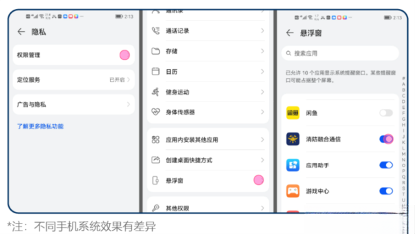 若关闭悬浮窗,应用的部分提醒窗口将无法发送提示通知。