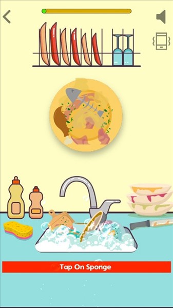 这里需要执行一定的顺序,现涂抹洗洁精,接着拖动洗碗厨具到盘子上,最后用干毛巾擦拭即可。