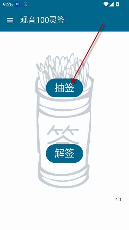 1在搜软本站找到观音100灵签软件,打开该软件后,选择抽签功能,操作示意图如下: