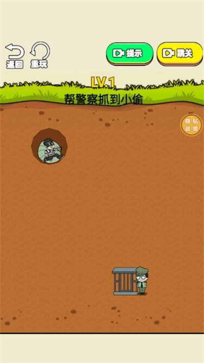 3、在【LV.1】关卡,留意小偷洞穴的所在位置,也能使用【提示】功能,帮助警察对小偷进行围捕。