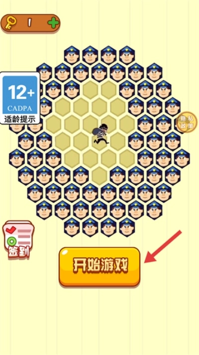 1、注意查看【12+-CADPA适龄提示】,点击【开始游戏】后,通过规划路线来帮助警察围堵位于中心位置的小偷。