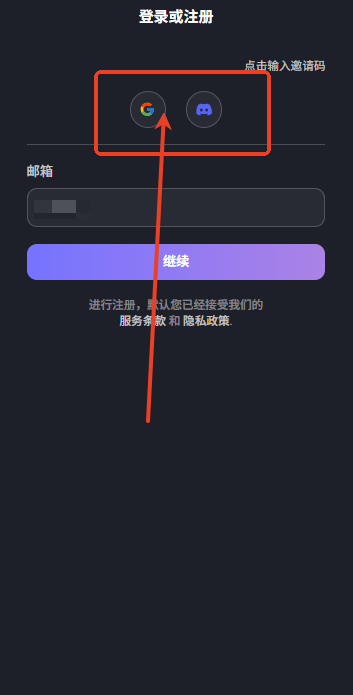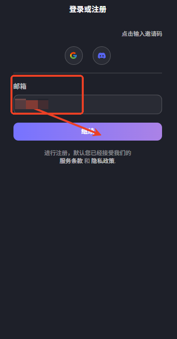 2、以“邮箱”为例,输入邮箱账号后点击“继续”按钮,再按照页面提示完成登录操作。
