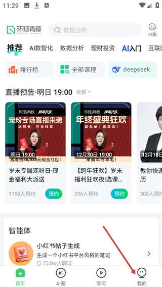 进入【环球青藤】后,在界面中能找到【我的】按钮。