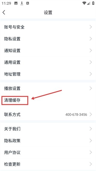 3、进入【设置】页面后,找到【清理缓存】选项,即可执行缓存清理操作。