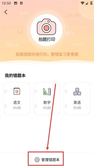 在首页点击【打错题】选项,即可进入错题管理页面,查看各学科的错题本。