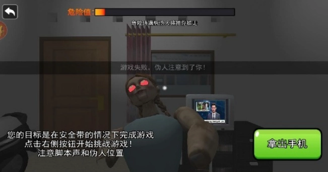 3、要是收手机的动作慢了些,伪人妈妈就会察觉,游戏也就失败了。