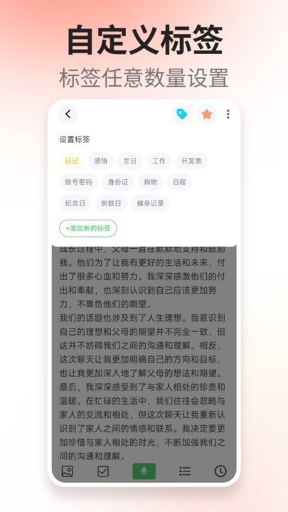 独特的个性标签功能,突破传统笔记模式局限,能依据不同场景与需求灵活设置标签,助力高效分类管理。