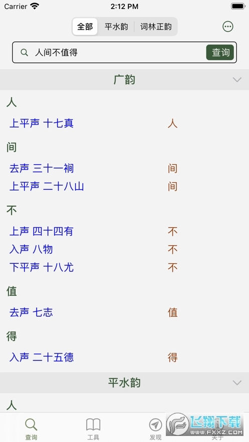 立刻点击查询标签就能查看结果,点击页面上的字悬浮图标可了解具体汉字韵律