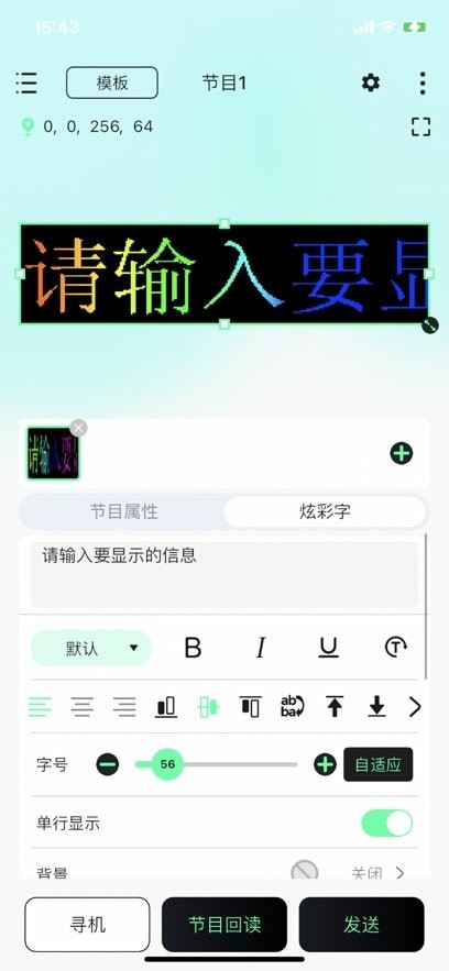 这是一款智能设备LED设置软件,支持文本、图片、视频等多种素材导入,还能即时调整排版布局与效果参数。用户可直接在手机屏幕上预览待播放内容的呈现效果,真正实现“所见即所得”,大幅简化了内容创作流程。