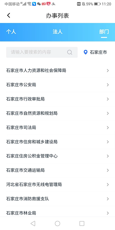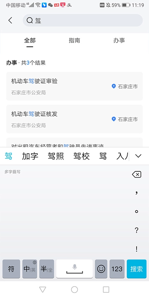 输入相关办事事项的关键字,就能智能查找出具体的办事项目。