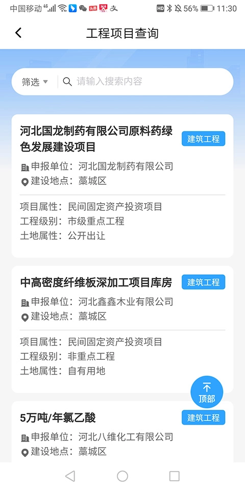 接下来,用户便能借助页面上的搜索框,搜索自己想要查找的工程项目。