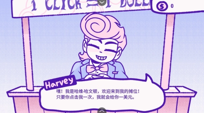 2、玩家可通过点击屏幕上的哈维·哈文顿获取金钱,每次点击的初始收益为1美元。