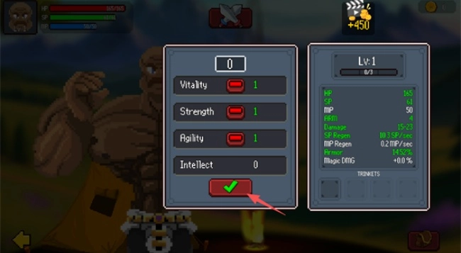 1、游戏开始,会让玩家选择基础属性,建议均衡加点,初期并不需要专精于某个方面。