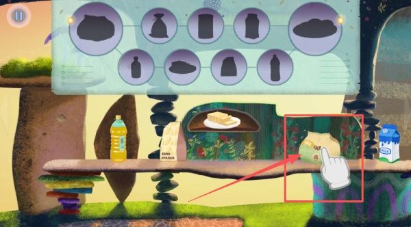 3、鼠标点红框面粉袋,从岩石平台拿烘焙材料。