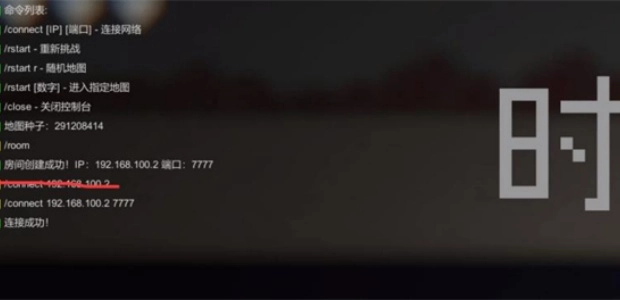 3、把显示出来的房间IP与端口信息发送给你的好友,好友只需在控制台界面输入/connect 对应的ip地址和端口,就能完成连接操作了。