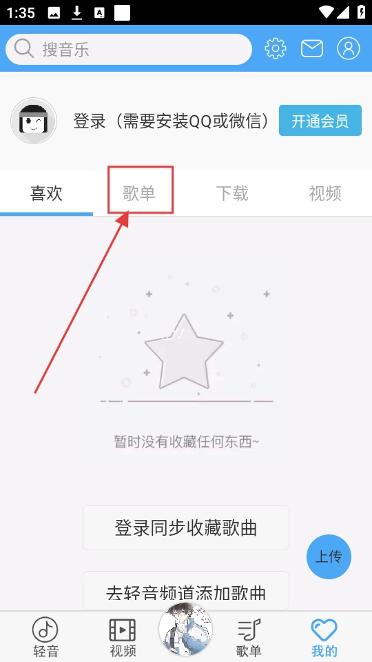 2、进入个人页面后,点击【歌单】选项,即可进入歌单管理区域。