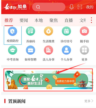登录如e如皋后,就像下面图片显示的那样:点击一下就能参加领取消费助力券的活动啦。