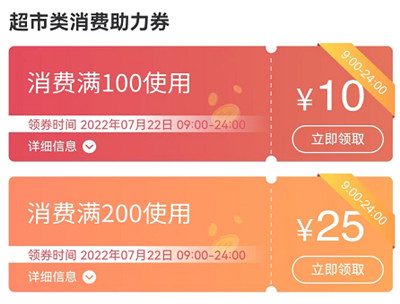 消费助力券总共涵盖五大类十三项,用户能够依据自身的实际需求,选择领取百货类、餐饮类、电器类、超市类的全部消费助力券,或者其中的部分消费助力券。