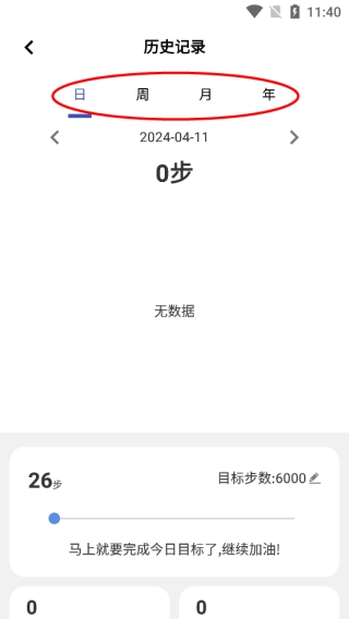 可以查看历史记录包括日、周、月、年。