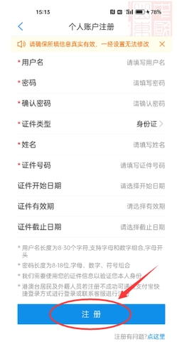 完成注册登录操作后,请进行个人实名认证,并按照系统指示完成相关信息的填写与上传。